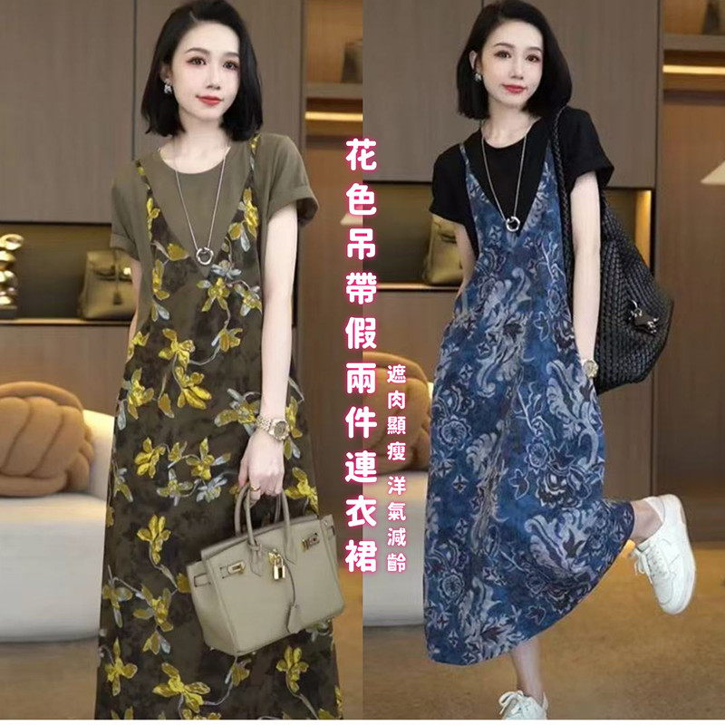 花色吊帶假兩件連衣裙,遮肉顯瘦,洋氣減齡,不費力就能穿搭好看,真的絕美!