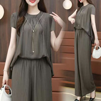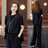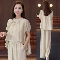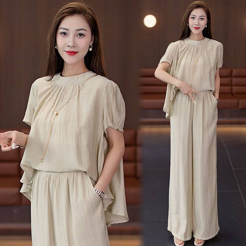 2026夏季新款氣質顯瘦清涼休閒套裝,垂順褶皺設計,遮肉顯瘦,通勤休閒兩相宜