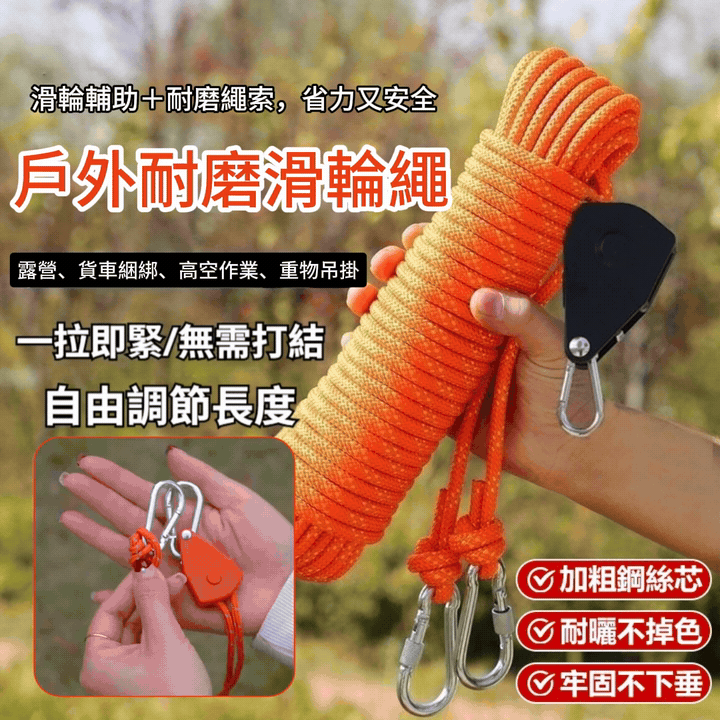 【家庭農務露營必備】戶外耐磨輪滑繩 綁貨 固定帳篷 牽車 整理園藝 都超實用 柔軟好收納 不佔空間 隨拿隨用超方便