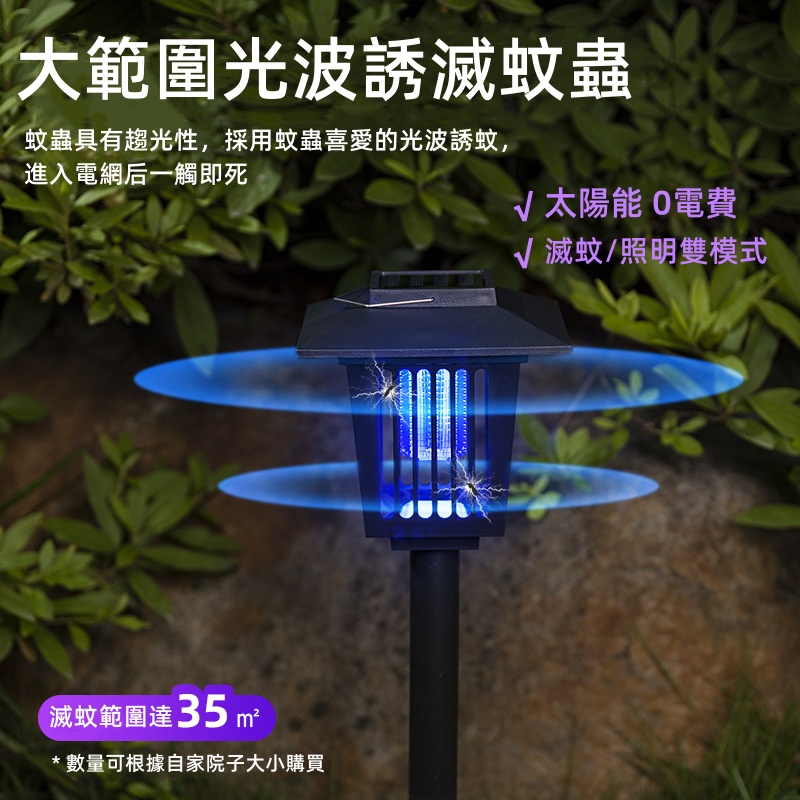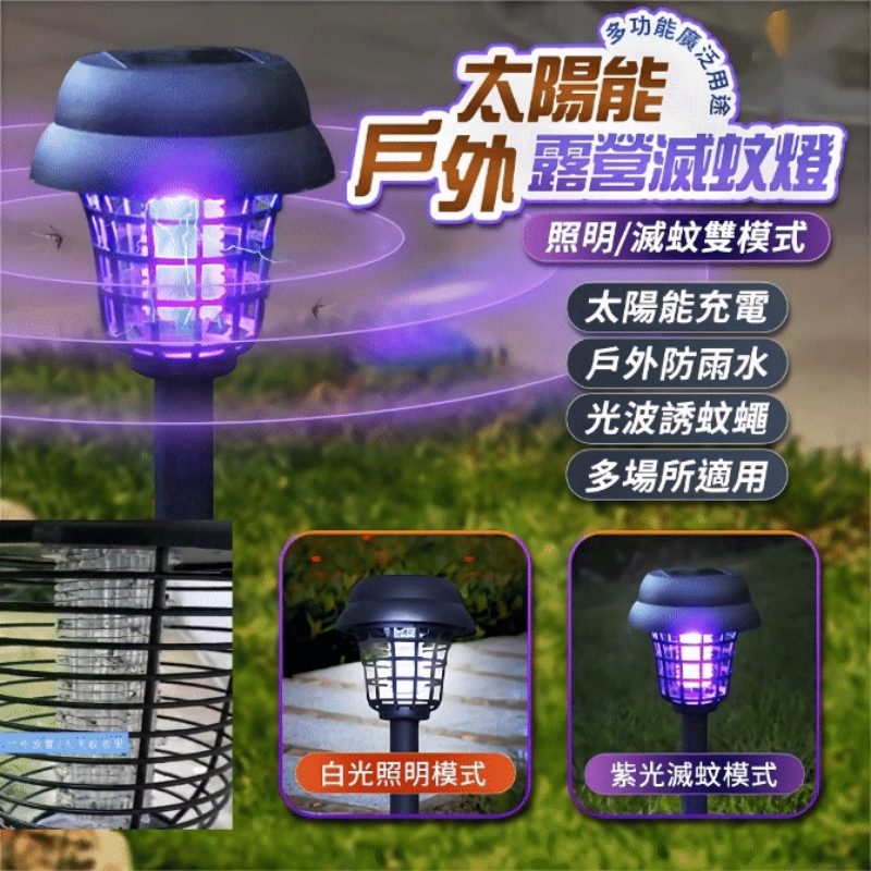 太陽能零電費 庭院 露營必備太陽能滅蚊燈 光波誘蚊電擊秒殺 照明 滅蚊雙模式 防水耐候 插地就用 整院無蚊超舒爽